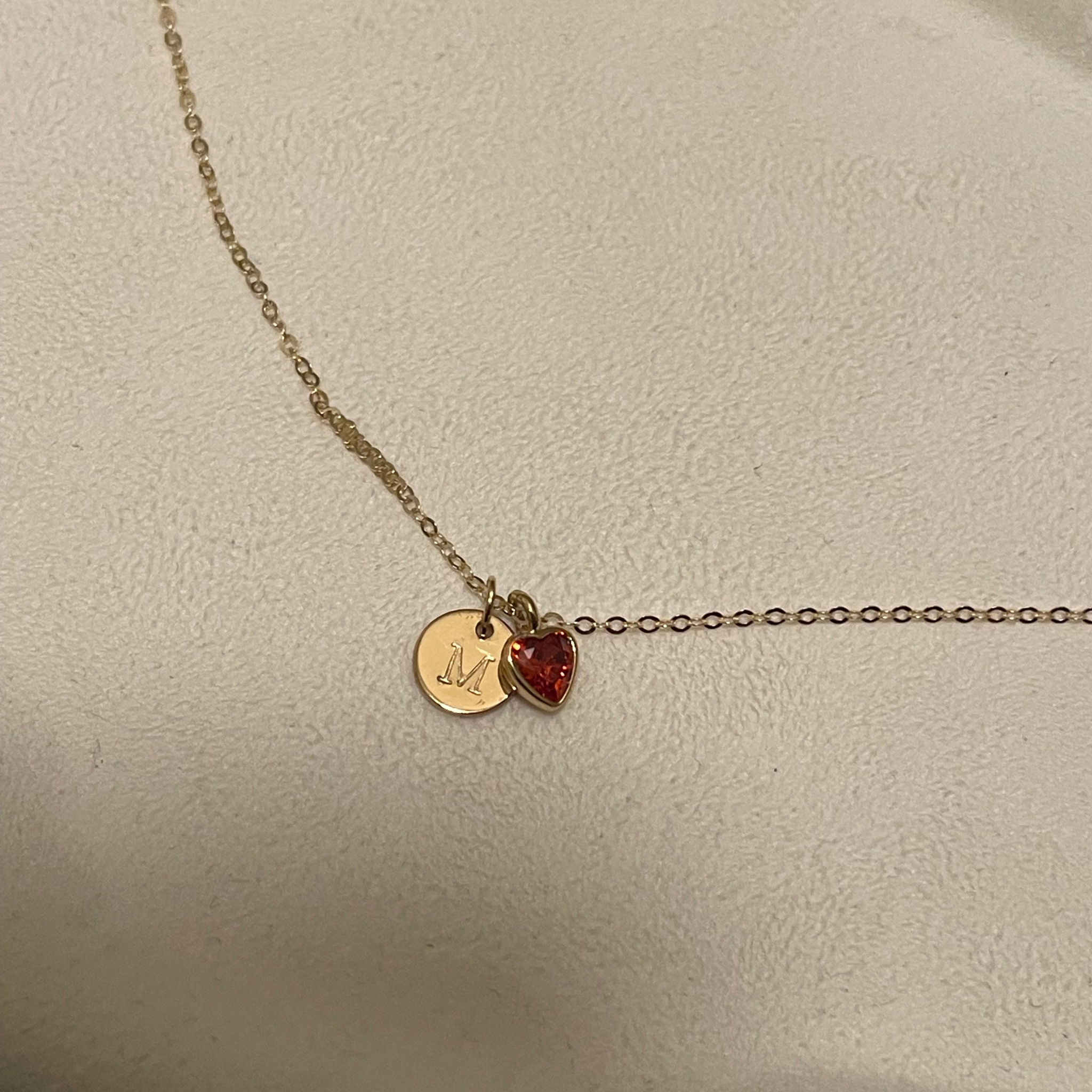 This custom hand-stamped initial necklace with a birthstone charm shines with meaning. Simple, intimate, and made just for you (or someone you love). A single initial is carefully hand-stamped, paired with a custom birthstone that catches the light like a tiny wish. Crafted in gold-plated stainless steel, it’s designed to glow softly against your skin, every day.