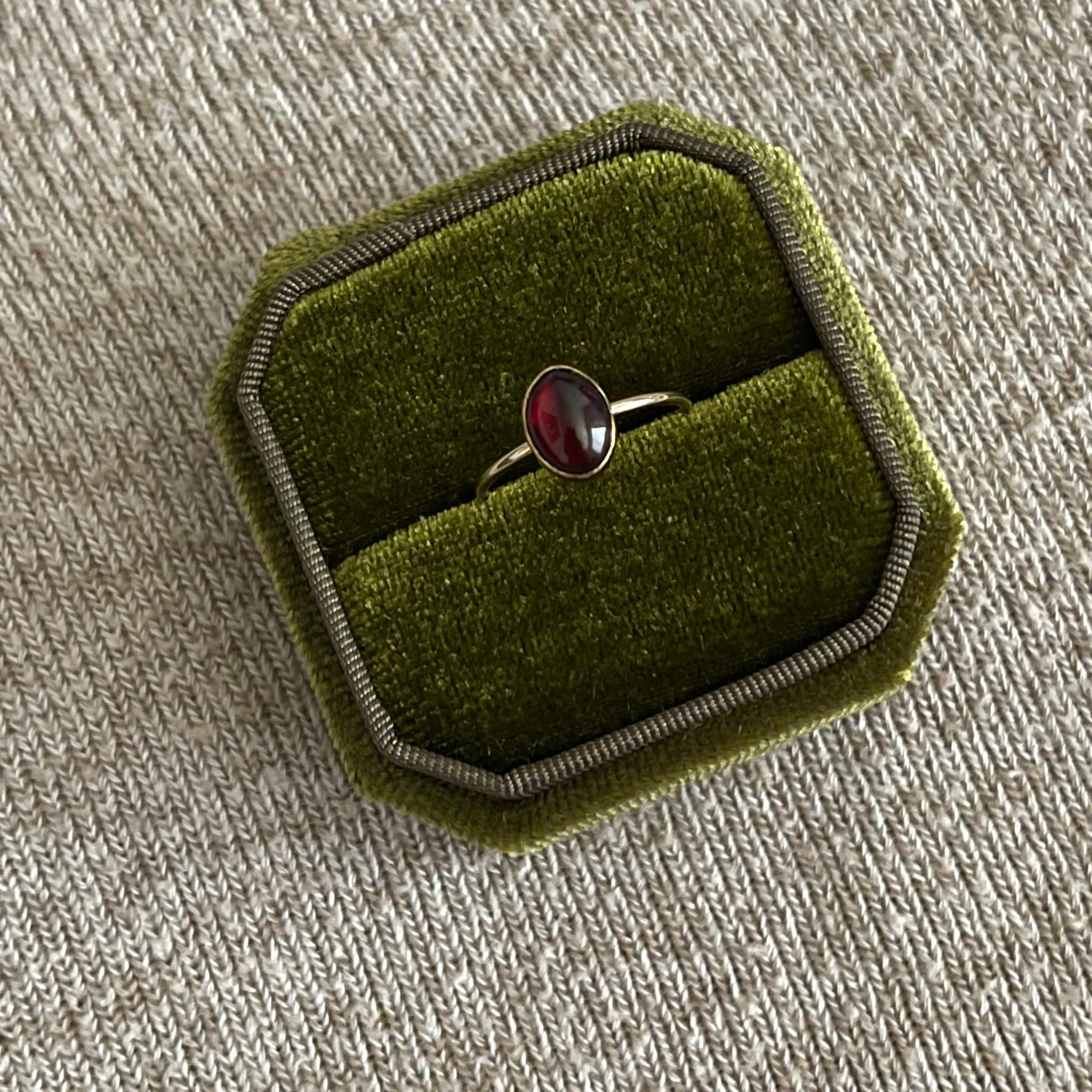 This natural Garnet ring carries the warm, enduring energy of an ancient gemstone wrapped in a refined, minimal design. Featuring an 8x6mm oval Garnet, hand-selected for its deep, wine-red glow, it rests securely in a smooth 14k gold-filled bezel that feels both bold and beautifully timeless.