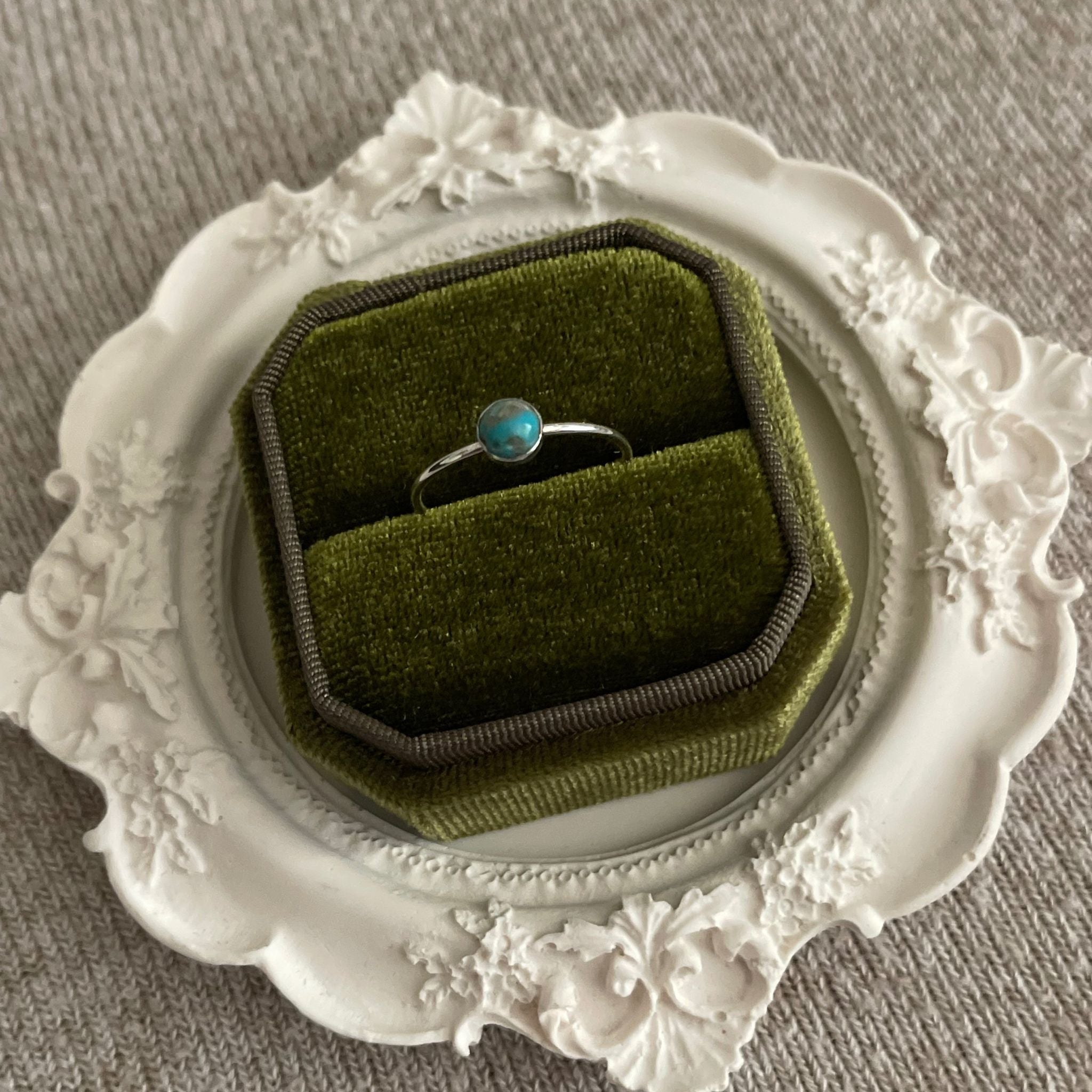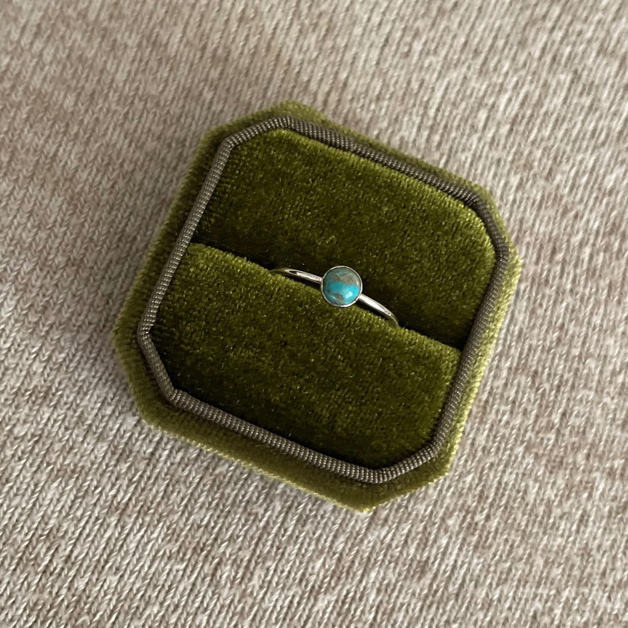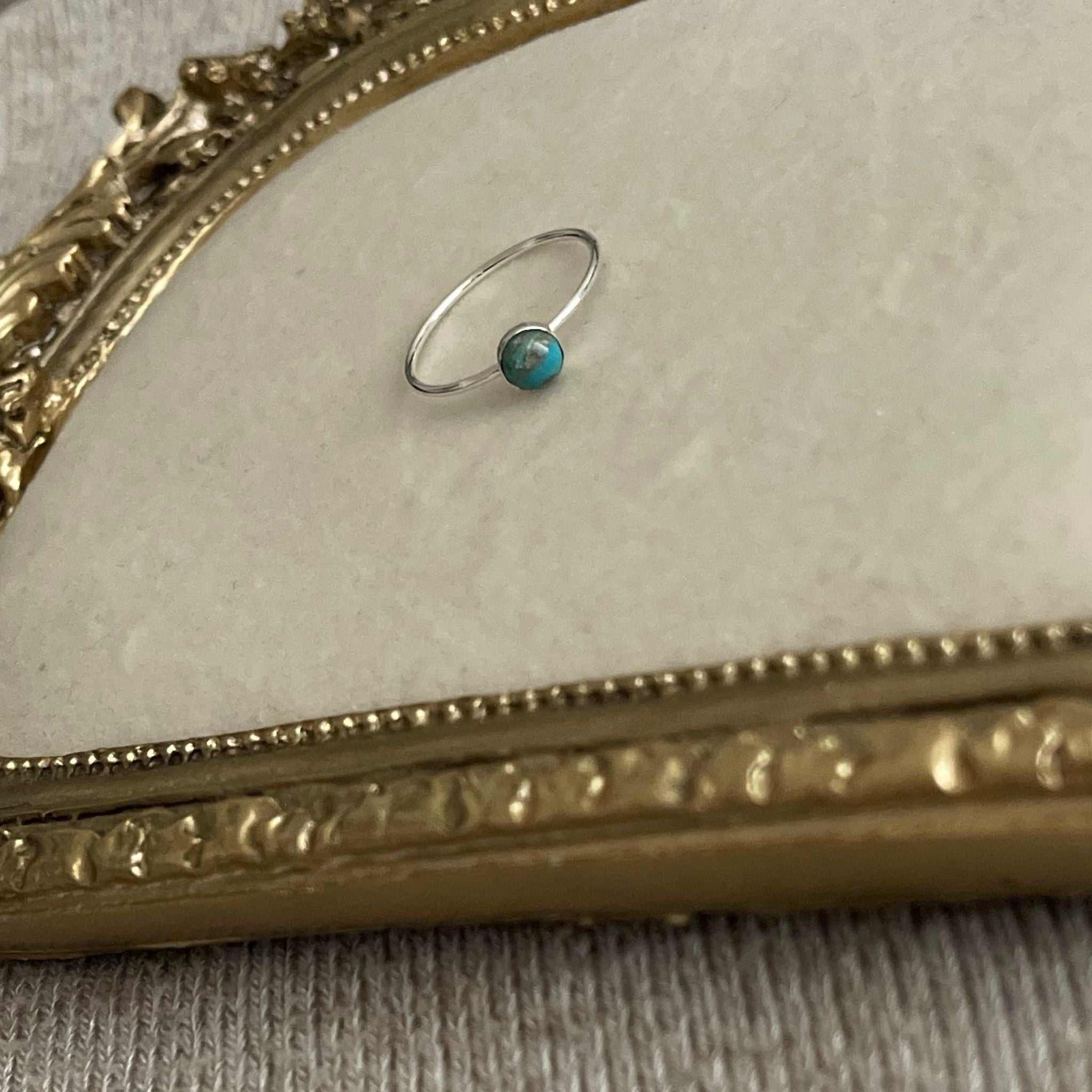 This natural turquoise ring feels like carrying a small piece of open sky wherever you go. Featuring a hand-selected 5mm round turquoise gemstone, known for its vivid blue hue and organic veining, this stone is carefully hand-set in a smooth sterling silver bezel.